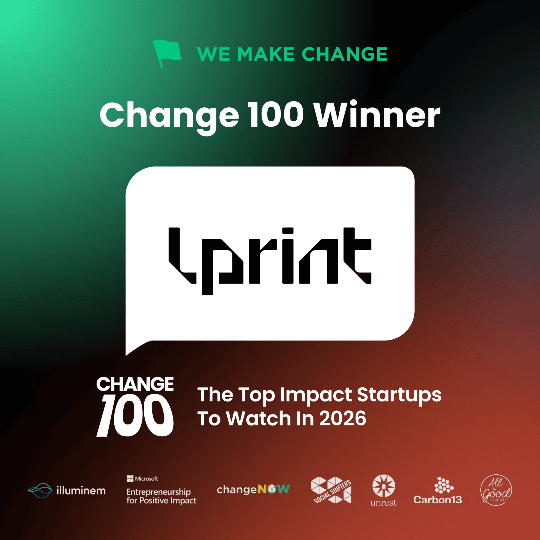 Nous sommes fiers d'annoncer que LPRINT a été sélectionnée parmi les Top 100 Impact Startups to Watch in 2026 par We Make Change.